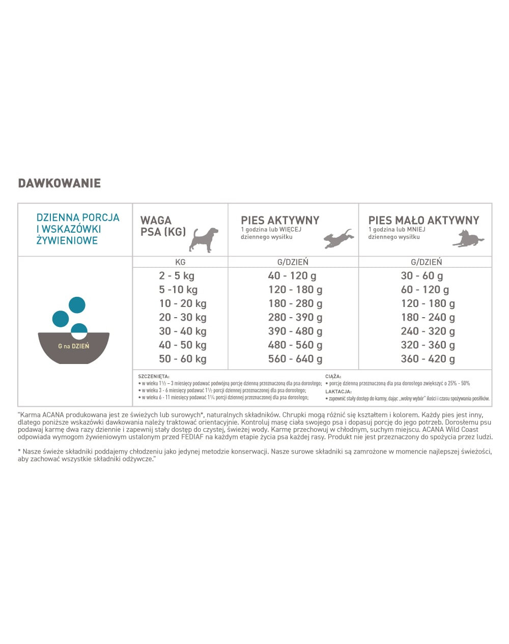 Die in der Tabelle angegebenen Portionen sind Richtwerte. Passen Sie die Futtermenge immer individuell an Ihren Hund an und berücksichtigen Sie dabei seine Kondition, seinen Gesundheitszustand, seinen Appetit und seine Veranlagung zur Gewichtszunahme.