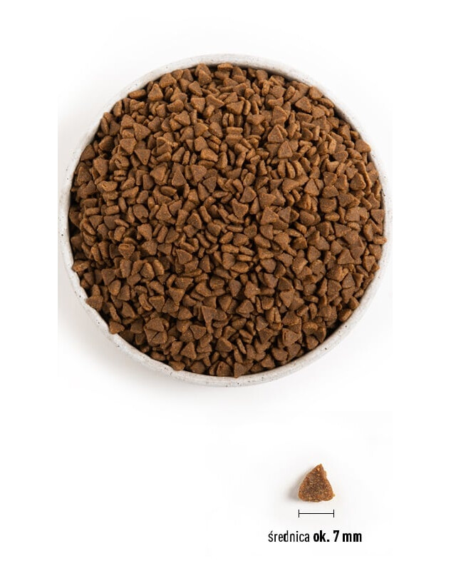 Rohprotein 37 %, Rohfett 18 %, Rohfaser 4 %, Rohasche 10 %, Feuchte 10 %, Kalzium 1,7 %, Phosphor 1,1 %, Magnesium 0,1 %, Taurin 0,1 %, Omega-6 2,8 %, Omega-3 0,9 %, DHA / EPA 0,2 % / 0,15 %