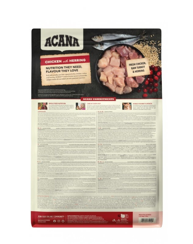 Acana Cat Indoor Entrée Katzenfutter ist unwiderstehlich und enthält nur natürliche, frische Zutaten wie Hühnerfleisch, Hering und Kaninchen. Futter von Acana wird aus kleinen, natürlichen Beutetieren der Vorgänger unserer domestizierten Katzen hergestellt und ist daher reich an tierischem Eiweiß und anderen wichtigen, artgerechten Nährstoffen. Dadurch bekommt Ihre Katze ein Futter, das so gut wie möglich dem ursprünglichen Futter ihrer Vorfahren entspricht. Für die Rezeptur wurden neben Fleisch und Fisch auch Innereien und Knochen verwendet, um alle essentiellen Nährstoffe bereitzustellen. Acana Katzenfutter enthält eine einzigartige Mischung aus wichtigen Vitaminen, Mineralien und Aminosäuren und unterstützt auf diese Weise die optimale Gesundheit Ihrer Wohnungs-Katze.