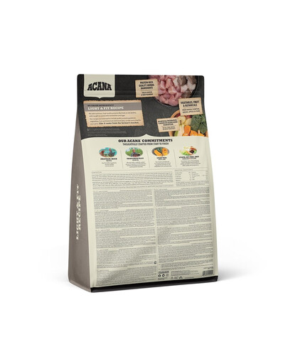 Acana Heritage Light & Fit ist reich an hochwertigem Fleisch von Freilandhühnern (55%) und Volleiern von regionalen Geflügelfarmen sowie fangfrischem Flunder von Vancouver Island, die täglich frisch, ungefroren und ohne Konservierungsstoffe angeliefert werden. Mit seinem hohen Proteingehalt ist Acana ein natürliches Futter, frei von Weizen, Reis, Mais und Gluten - Bestandteile, die häufig Verdauungsstörungen verursachen. Stattdessen enthält das Trockenfutter frisches Obst und Gemüse.