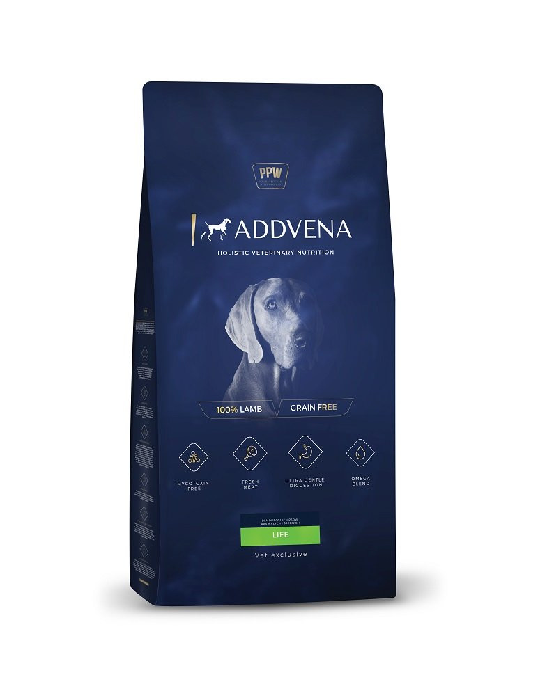 ADDVENA LIFE ist ein sehr schmackhaftes, gesundes und getreidefreies Futter auf der Basis von frischem Lammfleisch, speziell für ausgewachsene Hunde mit einem Gewicht von weniger als 20 kg. ADDVENA LIFE enthält tierische Proteine (Lamm) und ist daher besonders für Hunde mit Nahrungsmittelallergien und sogar für Hunde mit Allergien gegen andere Proteine als Lamm- oder Rindfleisch geeignet.
