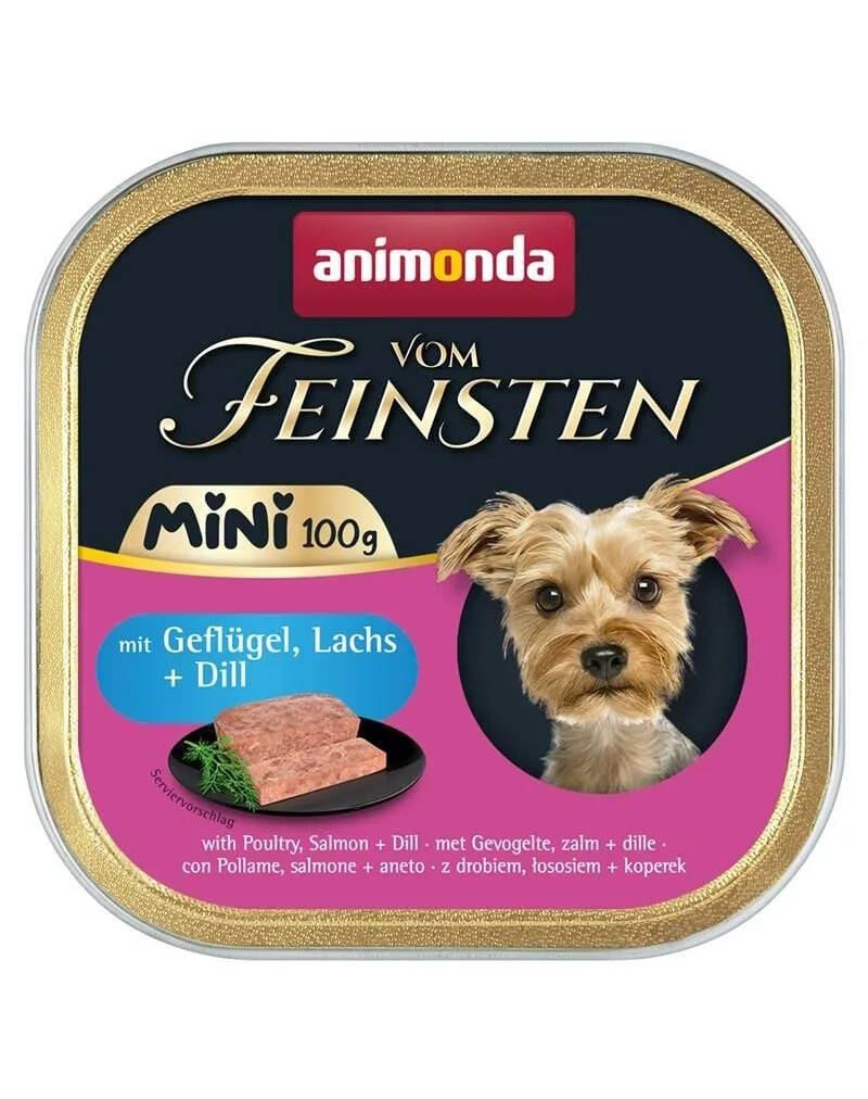 Vom Feinsten Mini mit Geflügel, Lachs und Dill ist ein vollwertiges Futter in praktischen Einzelportionen, das speziell für erwachsene Hunde kleiner Rassen entwickelt wurde. Die sorgfältig zusammengestellte Rezeptur sorgt für eine ausgewogene Ernährung und einen außergewöhnlichen Geschmack, der dem Hund beim Fressen große Freude bereitet.
