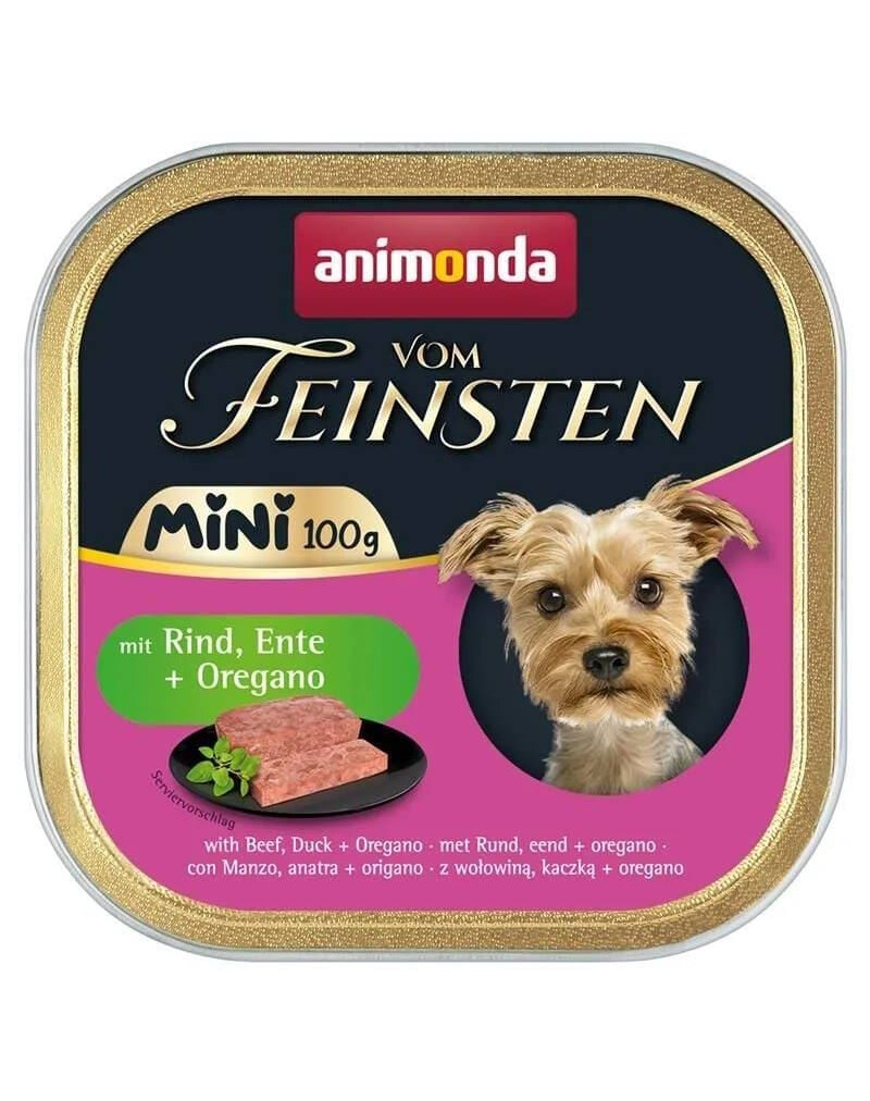 Vom Feinsten Mini mit Rind, Ente und Oregano ist ein vollwertiges Futter in praktischer Einzelportion, das speziell für erwachsene Hunde kleiner Rassen entwickelt wurde. Die sorgfältig zusammengestellte Rezeptur sorgt für eine ausgewogene Ernährung und einen außergewöhnlichen Geschmack, der dem Hund beim Fressen große Freude bereitet.