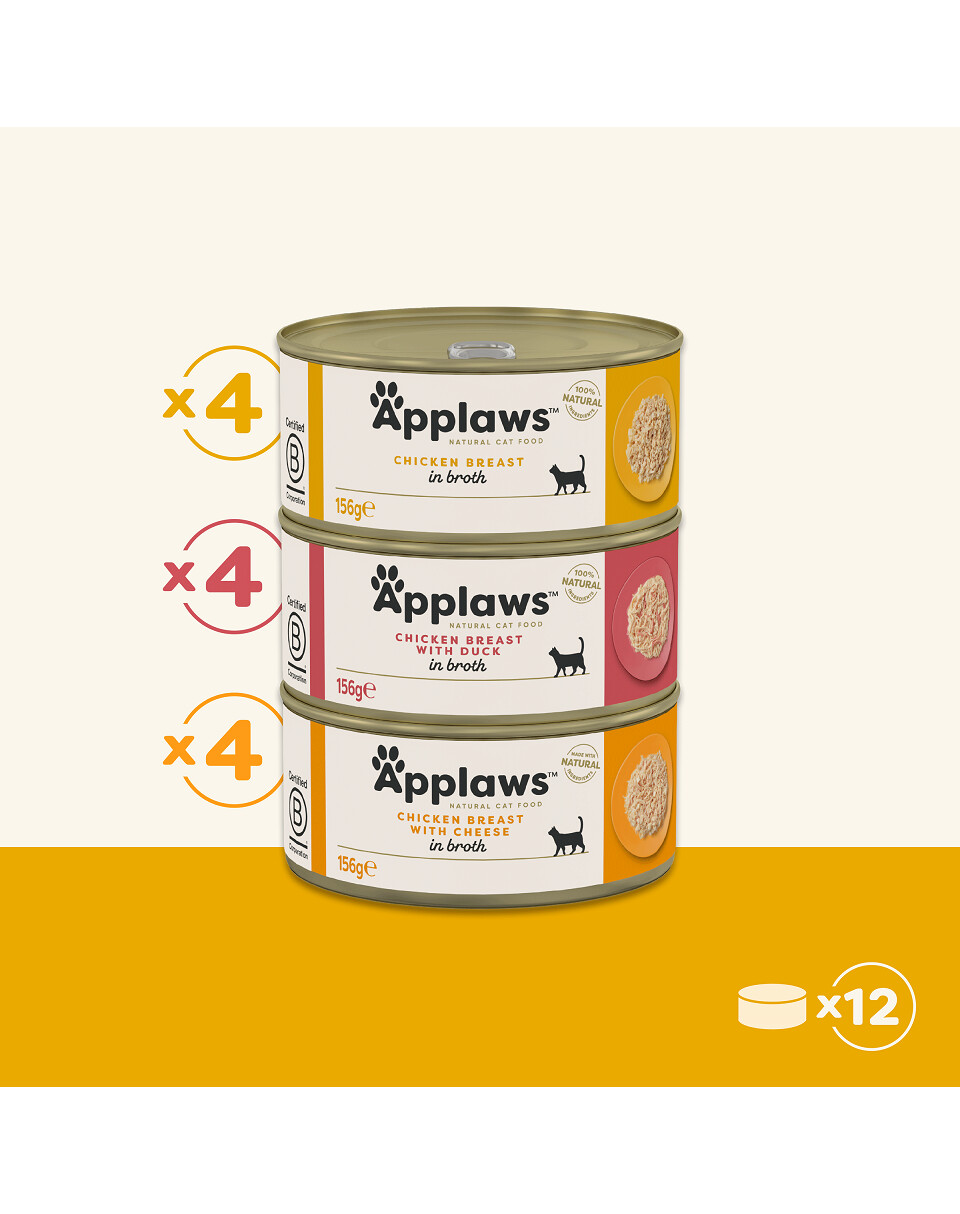Hühnerbrust (70%), Hühnerbrühe, Ente (5%), Reis