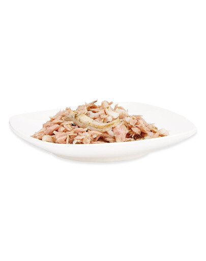 Frische Thunfischfilets (60%), Wasser (24%), Meeresalgen (10%), Sardellen (5%), Vollkornreis (1%)