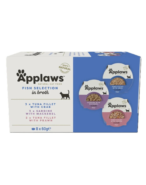 Applaws Cat Adult Fish Selection Multipack in Brühe ist ein natürliches, getreidefreies Ergänzungsfutter für ausgewachsene Katzen mit zartem Thunfisch in einer schmackhaften Brühe.