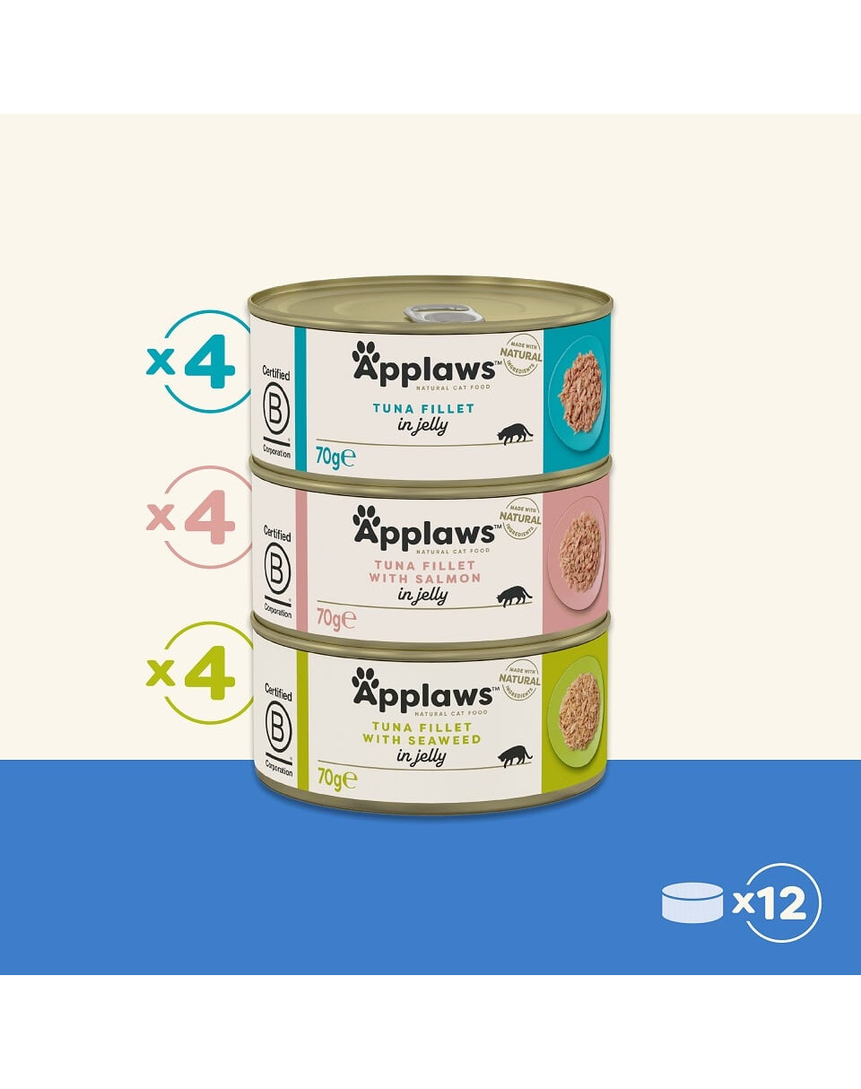 APPLAWS Fish Selection in Jelly ist ein natürliches Ergänzungsfuttermittel für ausgewachsene Katzen.