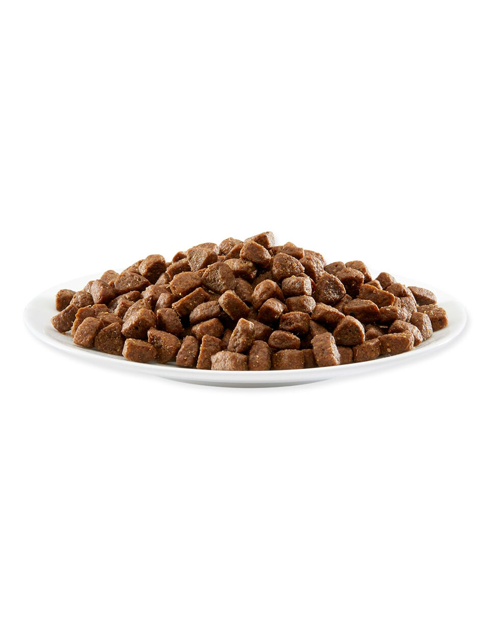 67% Huhn (aus getrocknetem Hühnermehl), 8% Hühnergehacktes, 6% Kartoffelstärke, getrocknete 8% Erbsen, 3% Hühneröl (Omega-6-Fettsäuren), Rübenbrei, Geflügelsoße, Vollei (aus getrockneten Eiern), Zellulosepflanzenfasern, Mineralstoffe, Vitamine, Lachsöl (Omega-3-Fettsäuren, EPA & DHA), getrocknete Tomaten, getrocknete Karotten, Zichorienextrakt, Alfalfamehl, Algen/Tang, Hefeextrakt (gereinigtes Beta-Gluten mind.0,1 %), Glucosamin, Dimethylsulfon, Chondroitin, Karotte, Pfefferminze, Paprikamehl, Kurkuma, Thymianextrakt, Zitrusextrakt, Taurin (1.000 mg/kg), Yucca-Extrakt, Cranberry, Fenchelextrakt, Johannisbrotextrakt, Ingwer, Hagebuttenextrakt, Löwenzahnextrakt, Rosmarinölextrakt, Oregano.