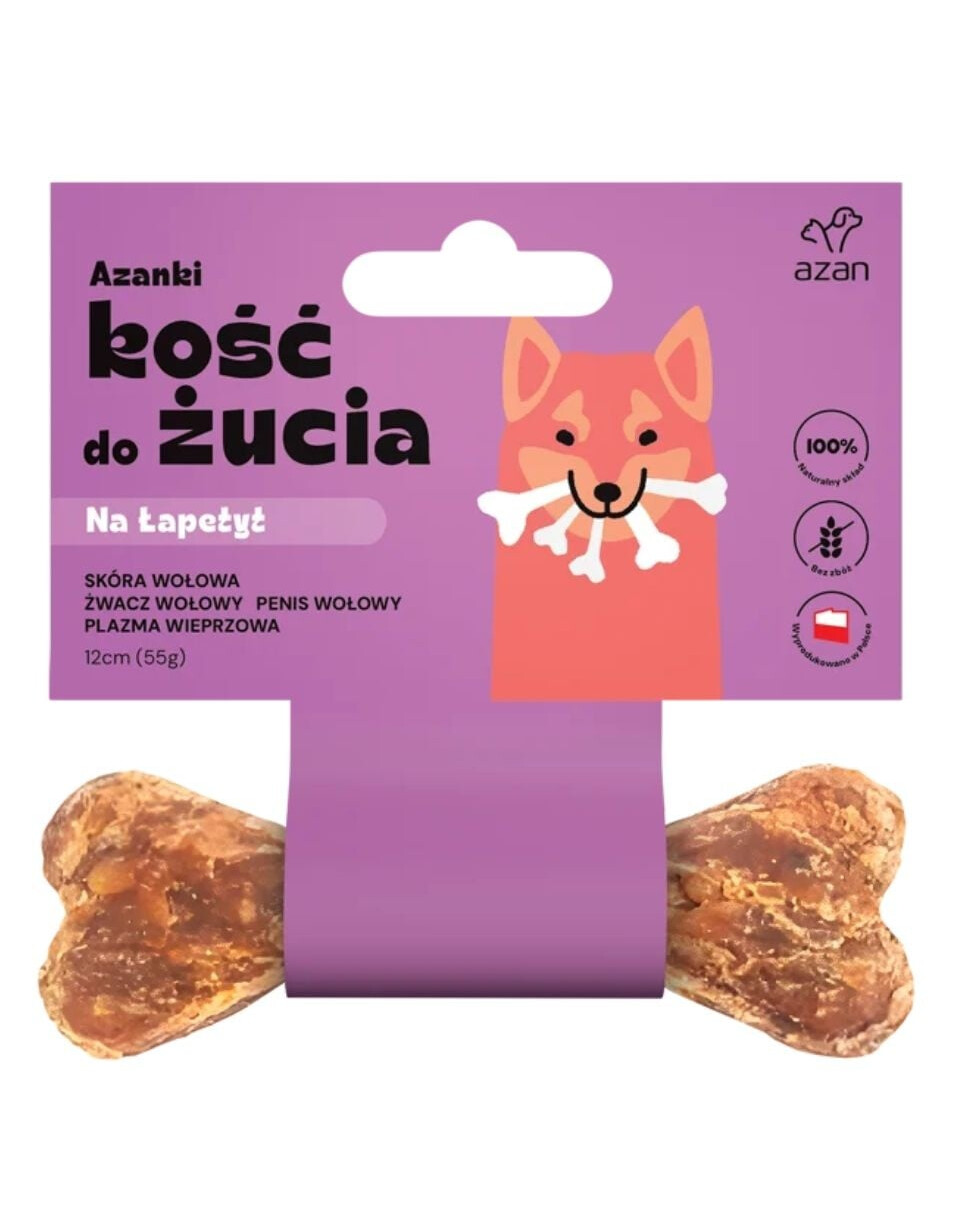 Die Azanki Kaustange NA ŁAPETYT ist ein vollständig natürlicher, schmackhafter Snack, der für erwachsene Hunde kleiner und mittelgroßer Rassen entwickelt wurde. Das Produkt kombiniert aromatische Zutaten tierischen Ursprungs – Pansen und Rinderpenis – eingewickelt in hochwertige Haut. Diese Kombination stellt einen besonders attraktiven Snack dar, der selbst die wählerischsten Hunde zum Kauen anregt.