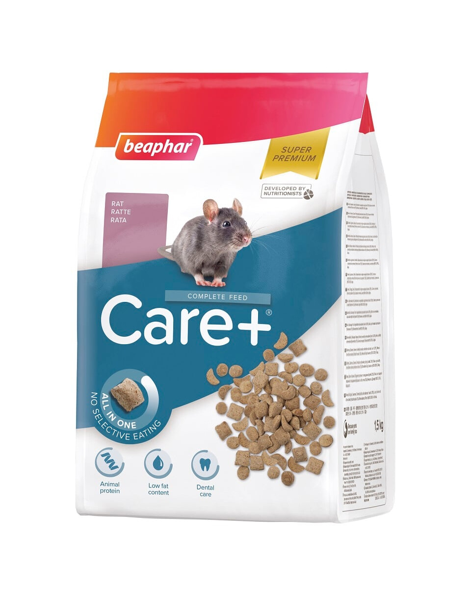Care+ Rat ist ein äußerst schmackhaftes, perfekt ausgewogenes Alleinfuttermittel für Ratten. Die Rezeptur wurde gemeinsam mit Tierärzten, Ernährungswissenschaftlern und Rattenzüchtern entwickelt. Ein spezielles Herstellungsverfahren (Extrusion) sorgt für eine hohe Verdaulichkeit des Proteins, eliminiert Bakterien, Schimmelpilze und Viren aus der Nahrung und macht dieses Produkt zu einer gesunden, sicheren und nahrhaften Mahlzeit. Jedes Futterpellet ist in seiner Zusammensetzung identisch, so dass das Phänomen des selektiven Fressens nur bestimmter Zutaten völlig ausgeschlossen ist. Die Tiere fressen fast das gesamte Futter und lassen keine Reste übrig, und die Besitzer können sicher sein, dass alle notwendigen Stoffe zugeführt werden. Ratten benötigen Eiweiß sowohl aus tierischen als auch aus pflanzlichen Quellen. Die im Futter enthaltenen Proteine haben einen hohen Anteil an essenziellen Aminosäuren, die für einen guten Muskelaufbau wichtig sind. Care+ hat einen niedrigen Fettgehalt und ein ausgewogenes Verhältnis von Omega-6- zu Omega-3-Fettsäuren. Das Futter enthält natürliche Inhaltsstoffe wie Echinacea, Spirulina und Yucca schidigera sowie chelatierte Mineralien. Die Kombination von FOS & MOS wirkt sich günstig auf die Darmflora aus.