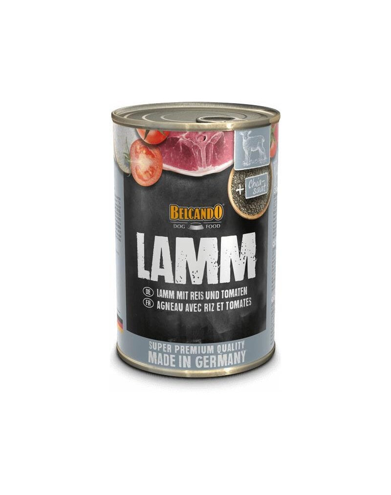 Lammfleisch, -pansen, -leber, -herz, -lunge (63 %); Fleischbrühe vom Lamm (26,5 %); Reis, gekocht (4 %); Tomaten (4 %); Chiasaat (1 %); Eierschalen, getrocknet (0,5 %); Mineralstoffe (0,5 %); Distelöl (0,5 %)