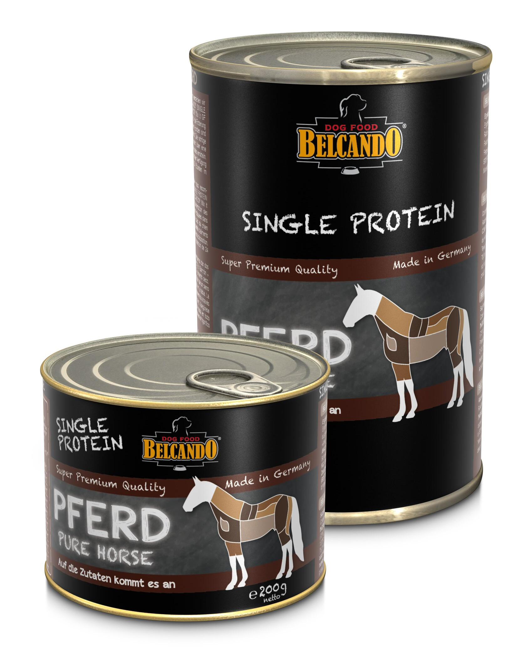 BELCANDO® Single Protein gibt es in sechs ausgesuchten Fleischsorten. Es sind keine weiteren Zusätze enthalten. Single Protein Feuchtnahrung ist in Kombination mit dem Ergänzungsfuttermittel BELCANDO® Mix it GF eine ideale Proteinquelle bei Eliminationsdiäten, bei denen Sie herausfinden, auf welche Fleischsorten Ihr Tier unter Umständen empfindlich reagiert.