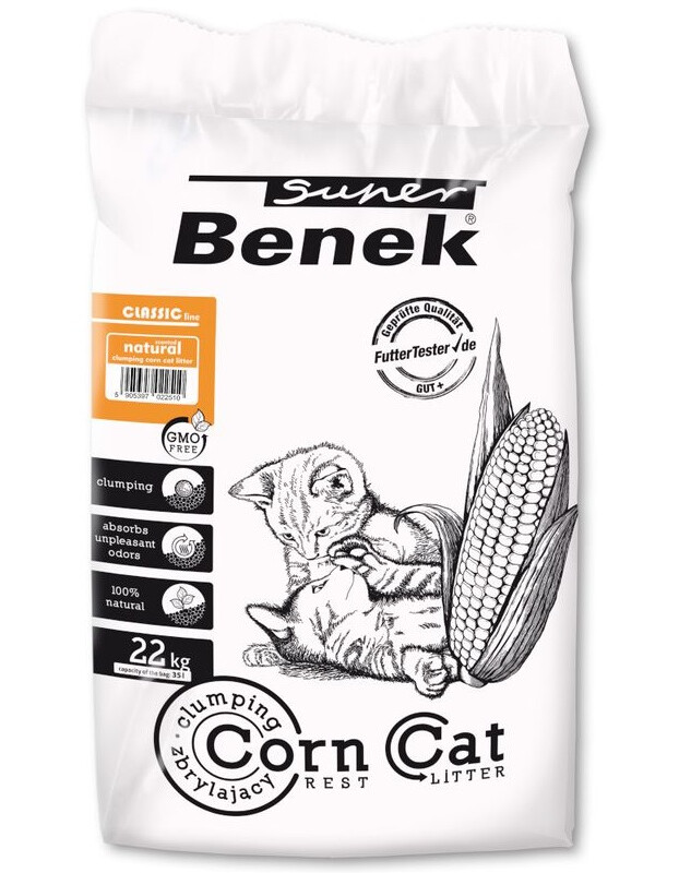 Benek Super CORN Cat ist ein innovatives Katzenstreu, das aus natürlichen Pflanzenteilen hergestellt wird.