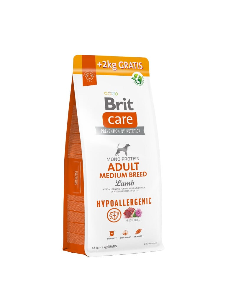 FÜTTERUNGSHINWEISE: Die in der Dosierungstabelle angegebene empfohlene Tagesdosis in 1-2 gleiche Portionen aufteilen und über den Tag verteilt füttern. Das Futter kann trocken oder mit lauwarmem Wasser angefeuchtet gefüttert werden. Wenn Brit Care zum ersten Mal gefüttert wird, mischen Sie es mit dem zuvor gefütterten Futter und erhöhen Sie die Dosis des Brit Care Futters schrittweise über 7 Tage. Die tägliche Dosis kann je nach Umgebung, Aktivität und Alter Ihres Hundes variieren. Stellen Sie sicher, dass Ihr Hund jederzeit Zugang zu einer Schale mit frischem Wasser hat. Trocken, kühl und vor direkter Sonneneinstrahlung geschützt lagern, nach dem Öffnen wieder verschließen.