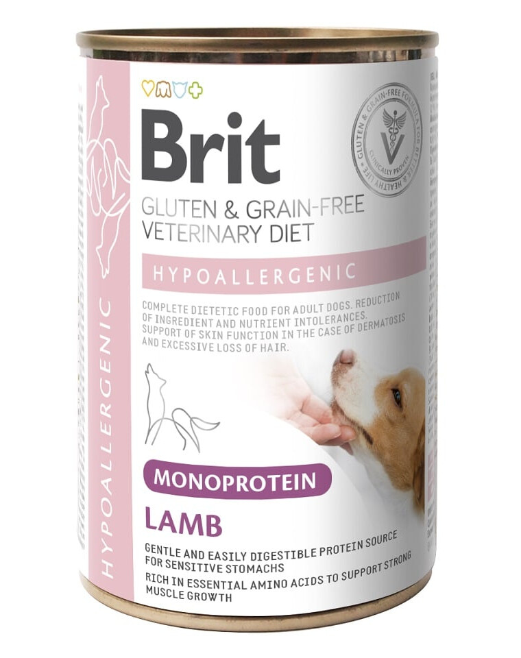Hat Ihr Hund mit Nahrungsmittelallergien, einem empfindlichen Verdauungssystem oder Hautproblemen zu kämpfen? Setzen Sie auf eine speziell für solche Bedürfnisse entwickelte Diät – Brit Veterinary Diets Hypoallergenic. Es handelt sich um ein vollwertiges, feuchtes veterinärmedizinisches Futter, das auf Lamm als einzige Quelle für tierisches Eiweiß basiert, wodurch das Risiko von Unverträglichkeiten minimiert wird.