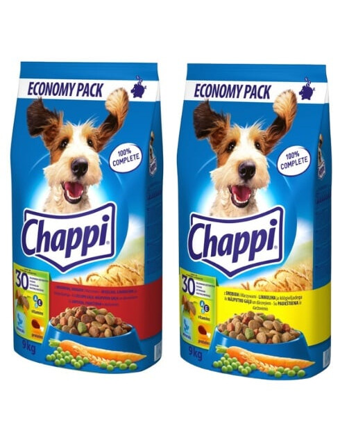 Chappi Trockennahrung enthält über 30 Nährstoffe, unter anderem Vitamine und Mineralstoffe, aus sorgfältig gewählten und qualitativ hochwertigen Inhaltsstoffen: Proteine, Cerealien und Gemüse.