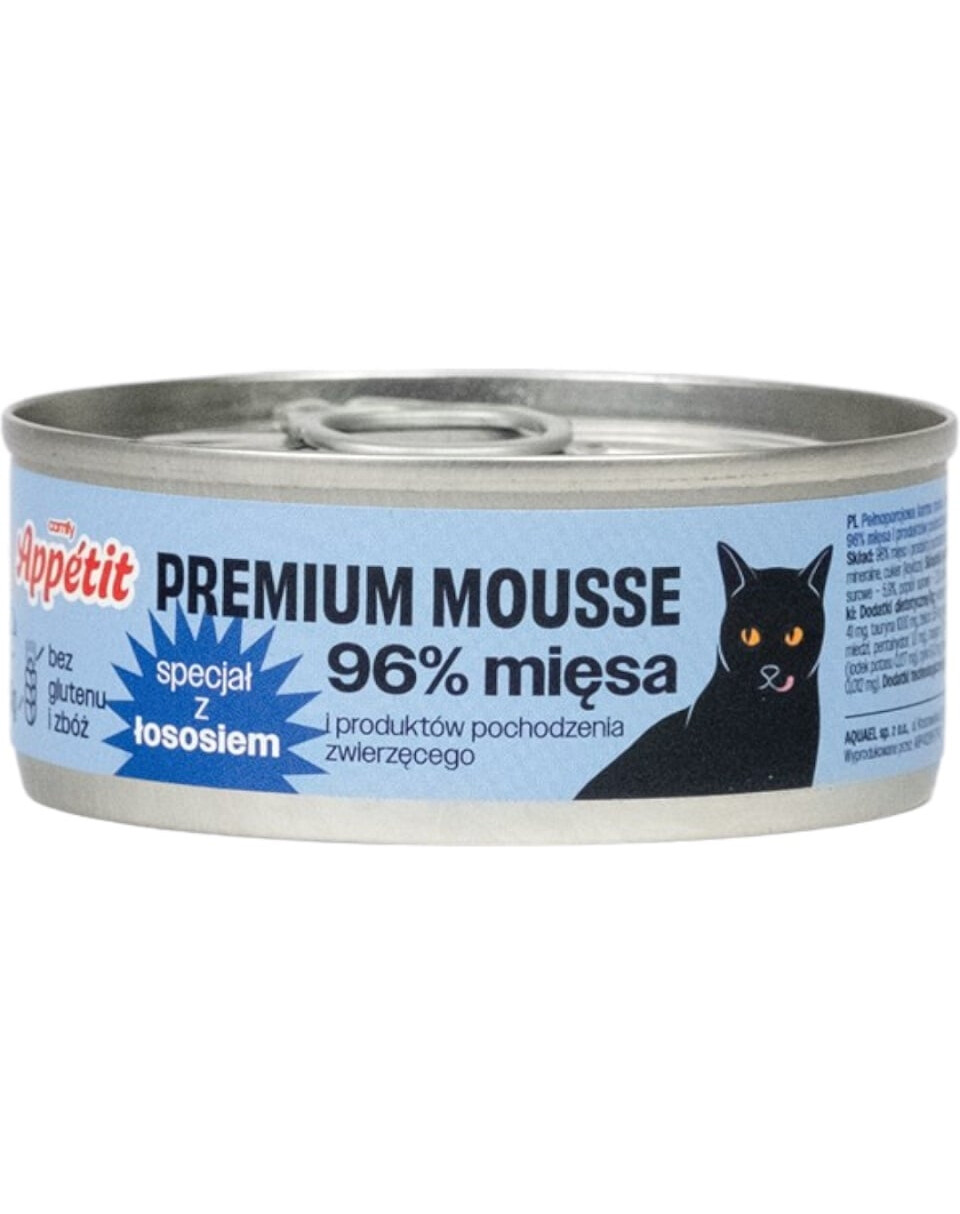 Comfy Appetit Premium Mousse enthält 96% Fleisch und tierische Bestandteile (davon 26% Lachs), der Rest besteht aus Vitaminen und Mineralstoffen.