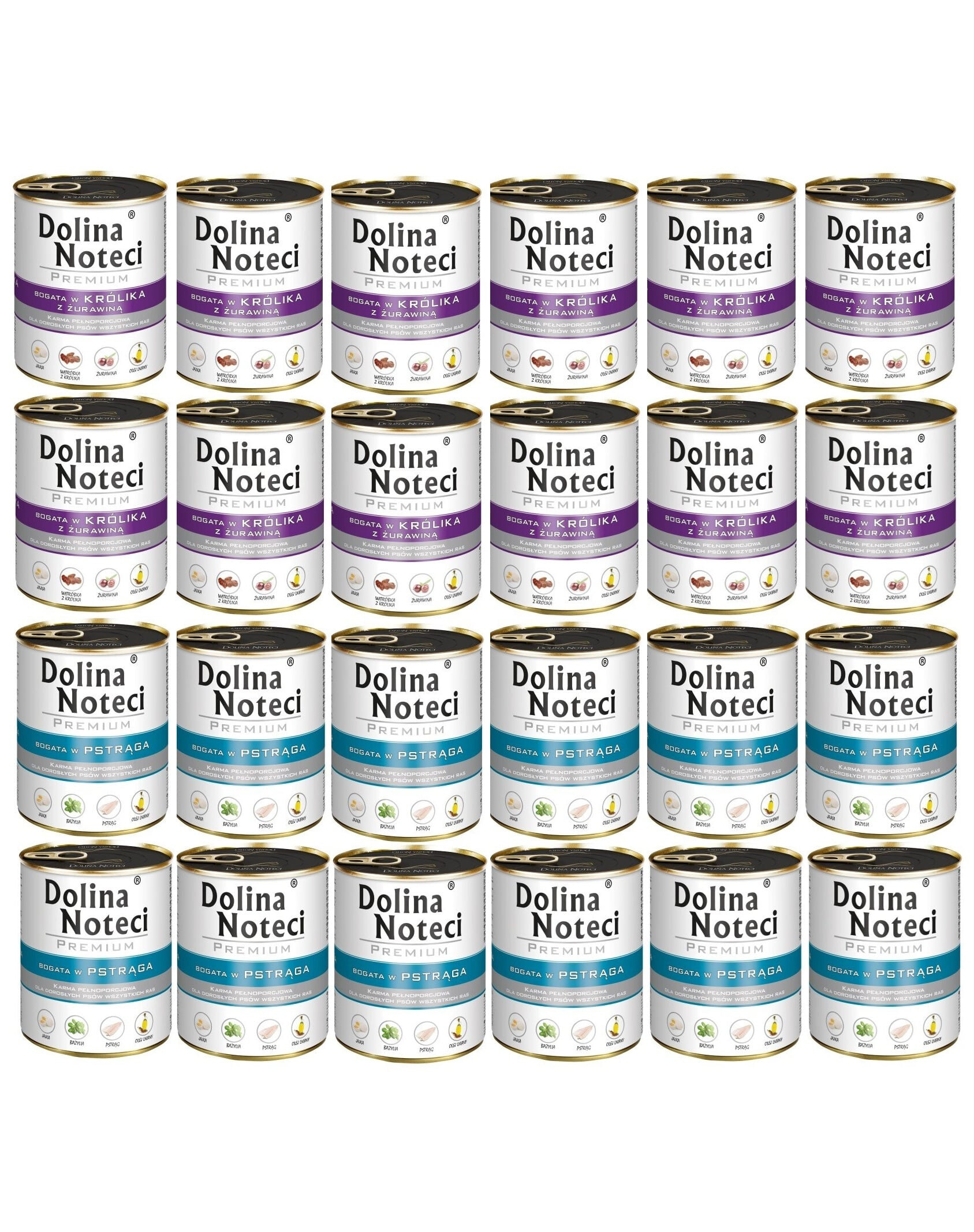 Schwein 26% (Leber, Herz, Schweinefleisch), Brühe, Rind 22% (Lungen, Euter, Magen), Forelle 14%, Ei 3%, Calciumcarbonat, Natriumtripolyphosphat, Leinöl 0,2%, Psyllium Samen 0 2%, Kaliumchlorid, Basilikum 0,01%