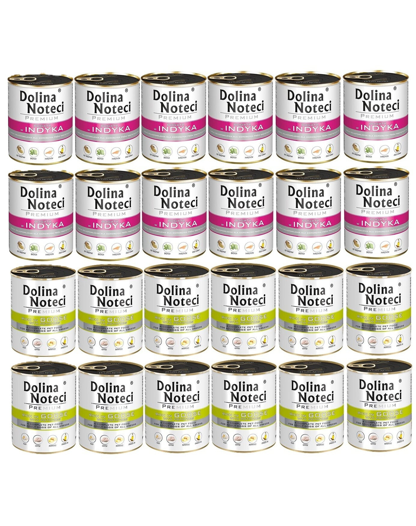 Schwein 27% (Schweinefleisch, SchweinefleischLeber, Schlund, Herz), Rind 24% (Lungen, Euter, Magen), Brühe, Truthahn 15% (Leber, Truthahnfleisch), Eier 3%, Karotten 1,7%, Natürlicher Brauner Reis 1.2 %, Calciumcarbonat, Natriumtripolyphosphat, Leinöl 0,2%, Psyllium-Samen 0,2%, Kaliumchlorid, Basilikum 0,01%.