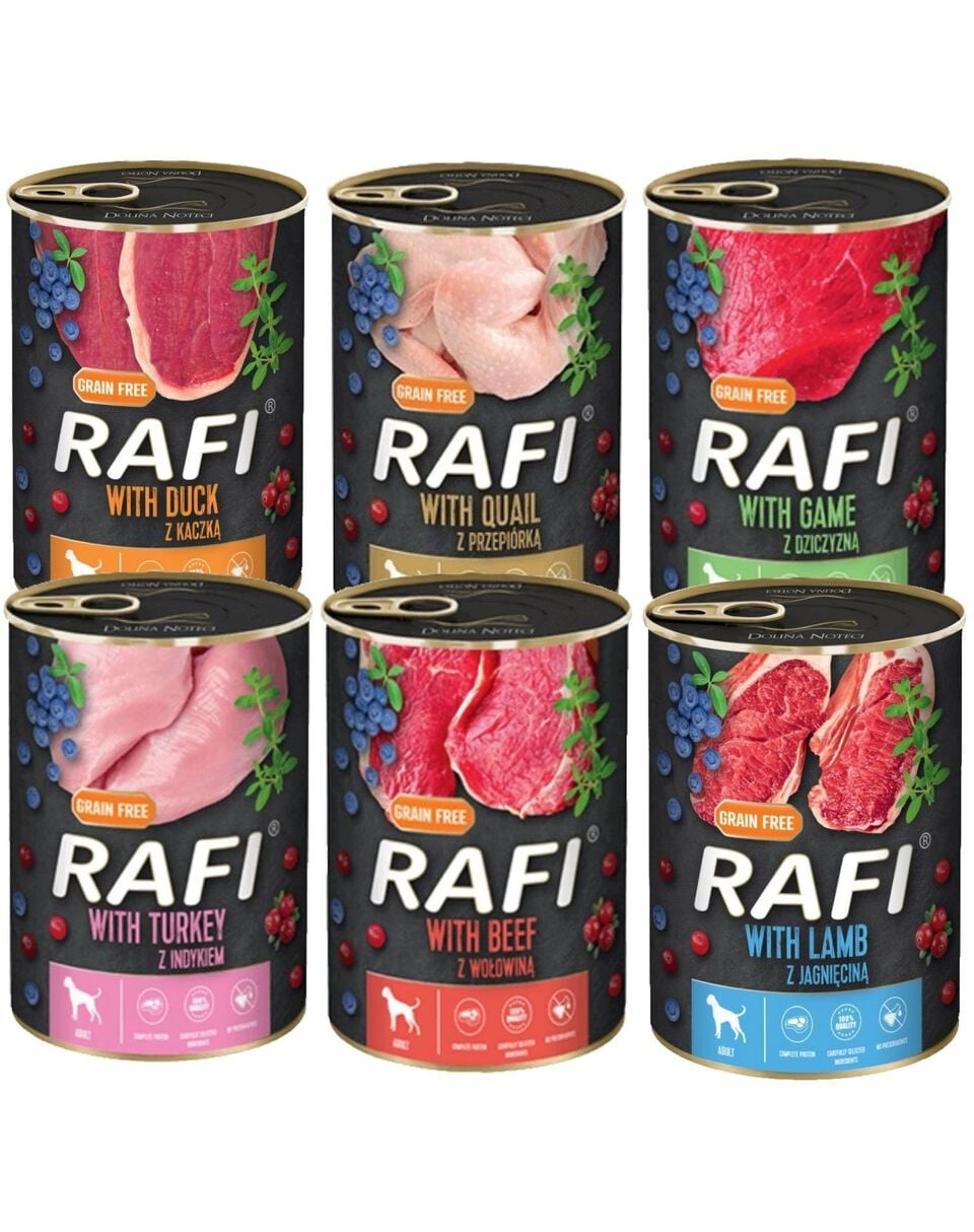 Dieses nasse Hundefutter von Rafi ist dank der Verwendung von Fleisch und Zutaten tierischen Ursprungs aus Enten eine Quelle für vollständiges Protein mit allen essentiellen Aminosäuren.