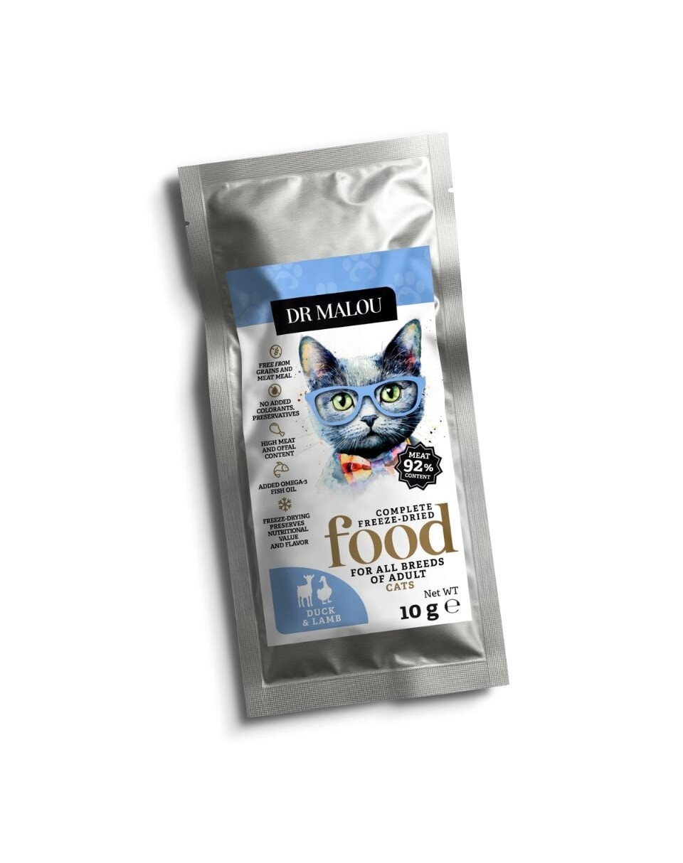 Nahrung von Dr Malou ist nicht nur gesund – es ist auch eine tägliche Portion Spaß und Aktivität für Ihre Katze! Die Gefriertrocknung sorgt für den Erhalt wertvoller Nährstoffe, und die reichhaltige Zusammensetzung unterstützt die volle Kraft und Immunität.