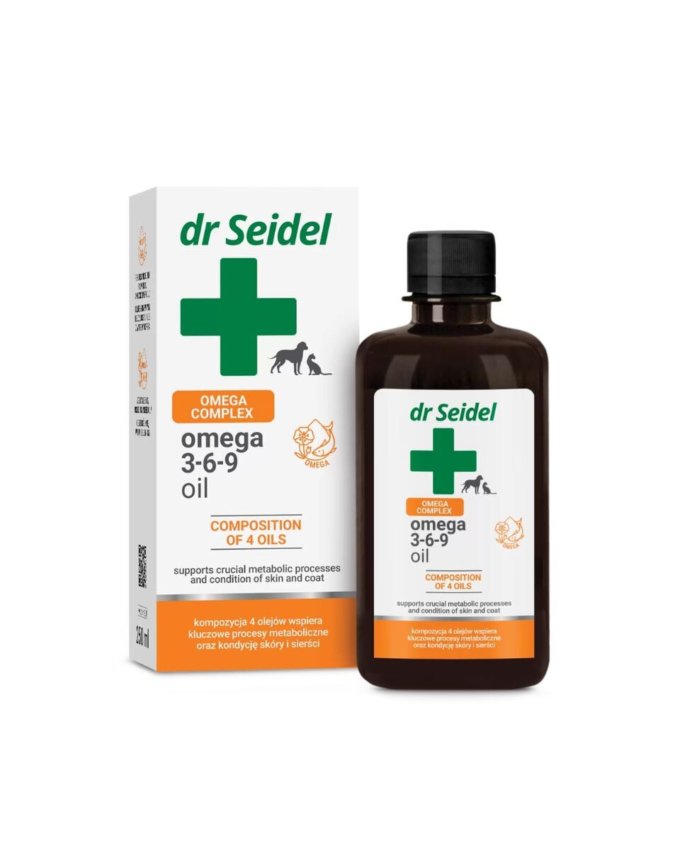 Omega 3-6-9 Öl ist ein hochwertiges Nahrungsergänzungsmittel für Hunde und Katzen, das zur täglichen Unterstützung der Gesundheit Ihres Haustieres entwickelt wurde. Die Zusammensetzung enthält eine Kombination aus sorgfältig ausgewählten Fischölen (aus Lachs und Dorschleber) sowie pflanzlichen Ölen, einschließlich wertvollem Leinsamenöl. Das Präparat ist eine Quelle für essentielle ungesättigte Fettsäuren (EFA) Omega-3, Omega-6 und Omega-9. Regelmäßige Supplementierung unterstützt das Immunsystem, die Funktion von Herz, Gehirn und verbessert die Haut- und Fellkondition von Tieren jeden Alters.