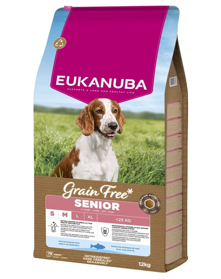 Getreidefreies Trockenfutter für ältere Hunde kleiner und mittlerer Rassen. Die Formel basiert auf Meeresfischen – einer leicht verdaulichen, hochverdaulichen Protein- und Omega-3-Fettsäurenquelle, die Haut, Fell, Gelenke und das allgemeine Wohlbefinden von Senioren unterstützt.