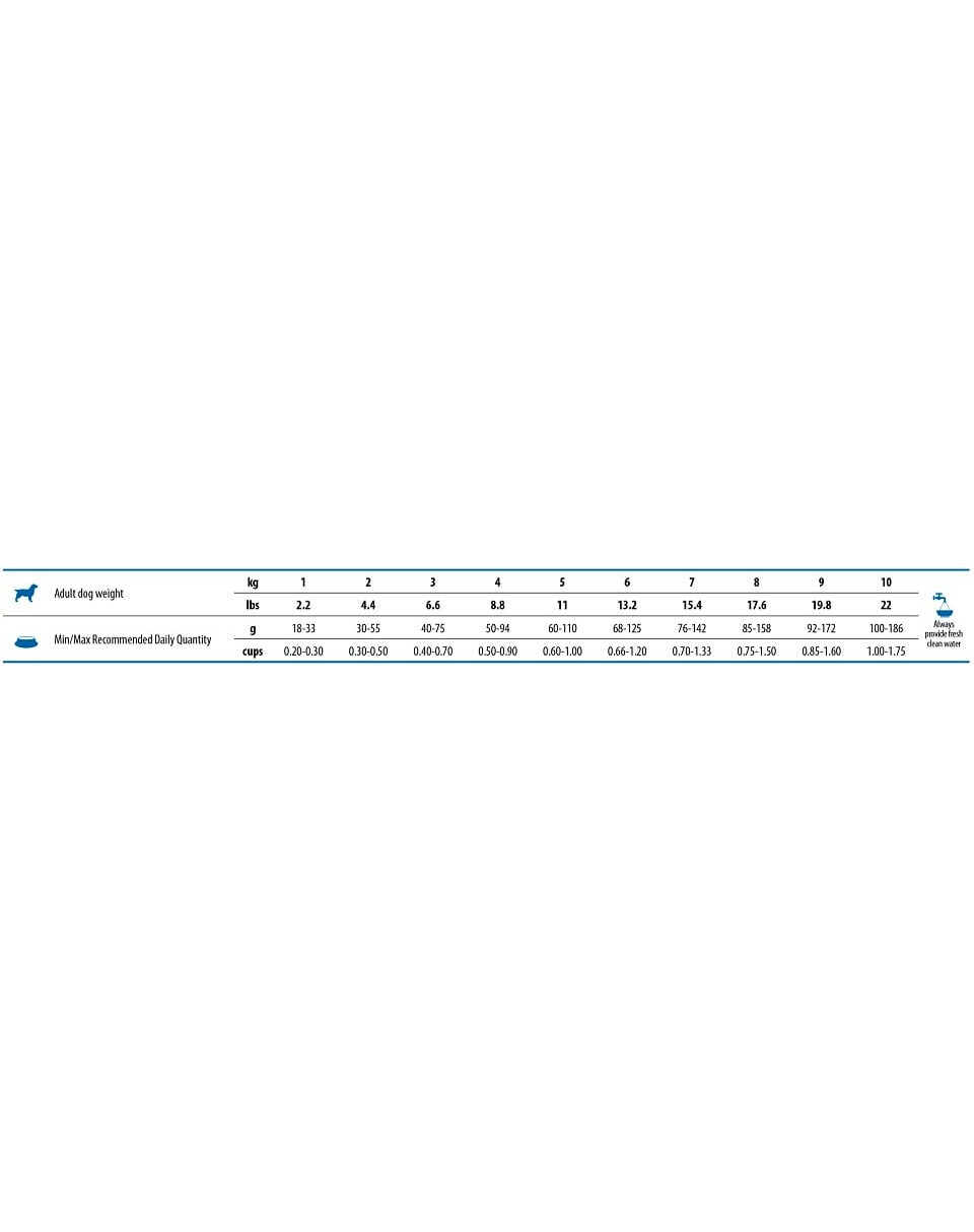 Die angegebene Fütterungsmenge ist orientierend und sollte individuell an Ihr Tier angepasst werden, unter Berücksichtigung des Aktivitätsgrads und des Gesundheitszustands des Tieres.