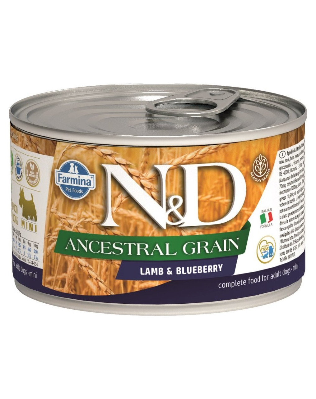 Lamm (50%), Heringe, gekochte Hühnereier, Dinkel, Hafer, Fischöl, Heidelbeere (2%), Fructooligosaccharide, Cholinchlorid, Chondroitinsulfat, Glukosamine, Vitamine, Mineralien.