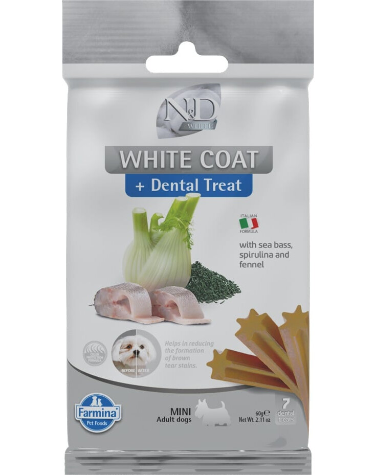Pflegen Sie die Gesundheit und das Aussehen Ihres Haustieres mit der speziell für die Pflege von weißem Fell entwickelten Formel N&D White. Dieses Zahnpflege-Leckerli hilft, die natürliche Schönheit und den Glanz des Fells zu bewahren, indem es das Risiko von Verfärbungen effektiv verringert und die Sauberkeit unterstützt. Dank der monoprotein Rezeptur, die auf hochwertigem hydrolisiertem Protein mit moderatem Gehalt basiert, wird das Risiko von Allergien und Entzündungen minimiert, was besonders wichtig für empfindliche Hunde ist.