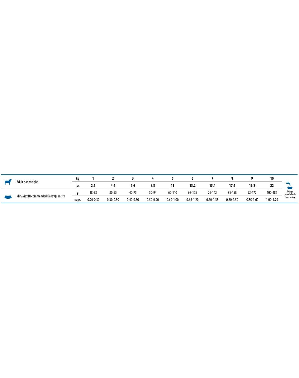 Die angegebene Fütterungsmenge ist orientierend und sollte individuell an Ihr Tier angepasst werden, unter Berücksichtigung des Aktivitätsgrads und des Gesundheitszustands des Tieres.