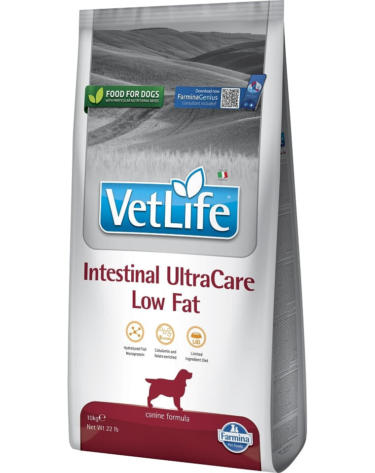 Farmina Vet Life Intestinal Ultra Care ist eine fortschrittliche Rezeptur, die für Hunde mit Verdauungs- und Nährstoffaufnahmeproblemen entwickelt wurde. Die Diät wurde so konzipiert, dass sie die Regeneration der Darmschleimhaut unterstützt, die Verdauung verbessert und die Nährstoffaufnahme fördert.