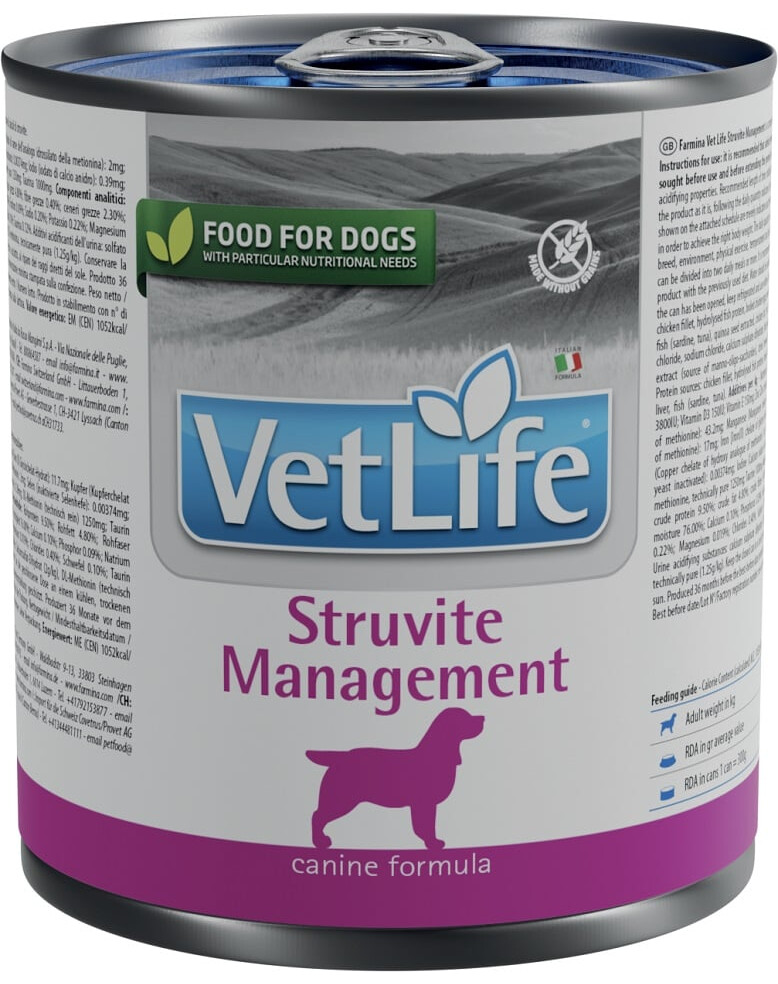 FARMINA Vet Life Natural Diet Dog Struvite Management ist ein diätetisches Alleinfuttermittel, das entwickelt wurde, um die Neubildung von Struvitsteinen zu verhindern.