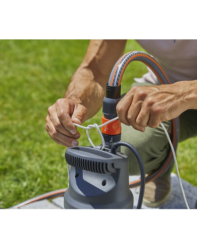Es kann eine Tauchdruckpumpe 6100/5 mit einem schwimmenden Einlass verwendet werden. Dadurch wird verhindert, dass Sedimente vom Brunnenboden in die Pumpe gelangen. Dieser GARDENA Pumpentyp ist eine äußerst vielseitige Lösung. Der integrierte, leicht zu reinigende Filter verhindert Verstopfungen und Schäden an der Pumpe und den angeschlossenen Geräten.