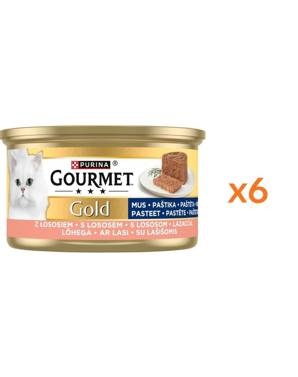 GOURMET Gold Nassfutter mit Lachs Mousse für adulte Katzen 6x85g