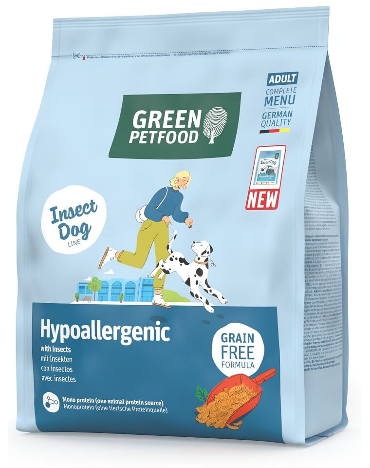 Green Petfood InsectDog Hypoallergen ist ein innovatives, getreidefreies Futter, das speziell für erwachsene Hunde mit Nahrungsmittelunverträglichkeiten und Allergien entwickelt wurde. Die einzige Quelle für tierisches Protein sind Insekten, die eine äußerst selten verwendete und gleichzeitig wertvolle Monoproteinquelle darstellen. Dadurch minimiert das Futter das Risiko allergischer Reaktionen und unterstützt die ordnungsgemäße Funktion des Verdauungssystems bei empfindlichen Vierbeinern.