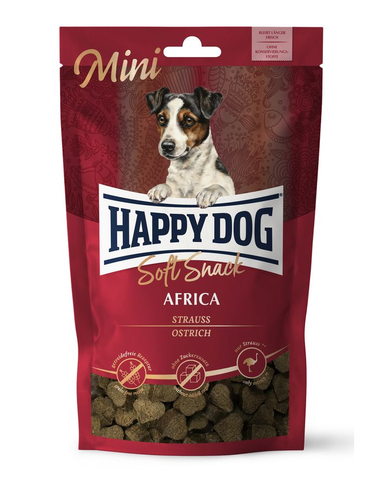 Der getreidefreie Soft Snack Mini Africa mit afrikanischem Strauß und Kartoffel verwöhnt kleine Feinschmecker. Schmackhafte Verwöhnmomente sind hier garantiert.