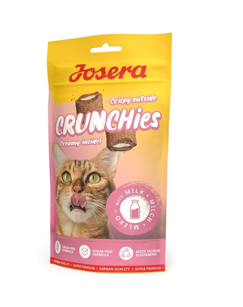 Einige Dinge ändern sich nie: Unsere kleinen Tiger sind verrückt nach Milch, seit sie Kätzchen waren - und heute können sie sich über Josera Crunchies with Milk freuen! Das getreidefreie und kalorienarme Rezept der Snacks wurde bis zur Perfektion verfeinert: In der knusprigen Hülle befindet sich eine cremige Füllung, die auch Ihre Katze lieben wird.