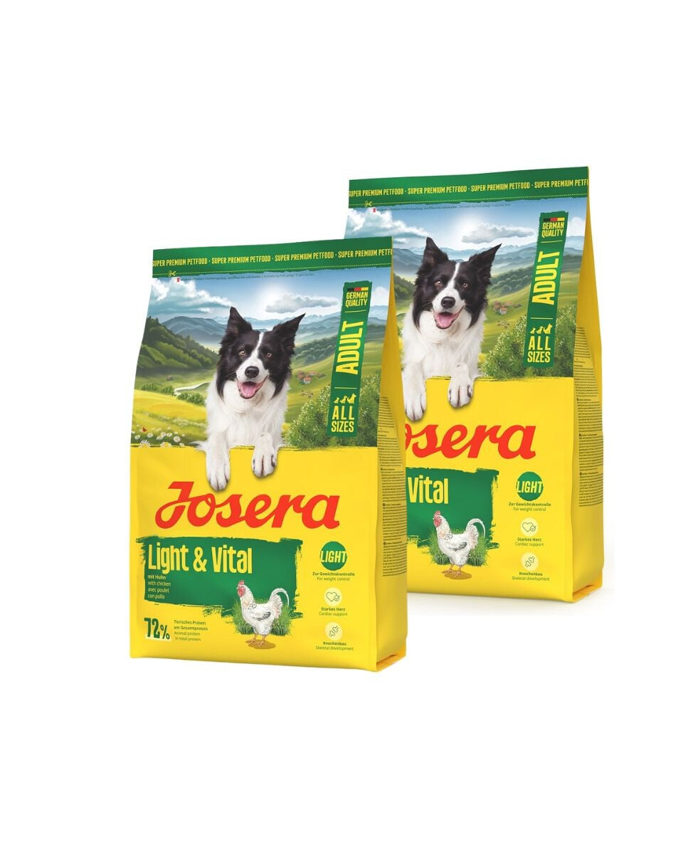 Erwachsene Hunde mit einer Neigung zu Übergewicht benötigen eine entsprechend angepasste Ernährung – deshalb wurde JOSERA Light & Vital. entwickelt. Es handelt sich um ein Trockenfutter mit niedrigem Fettgehalt, das hilft, das richtige Körpergewicht zu halten, während es dem Hund alle notwendigen Nährstoffe liefert.