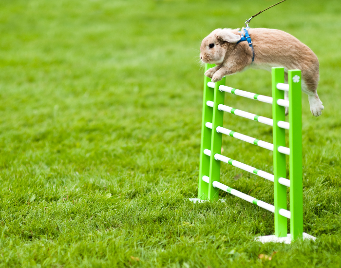 Kaninchenhüpfen ist ein toller Sport für Kaninchen! Es ist das Äquivalent zum Agility für Hunde. Beim Kaninchenhüpfen geht es darum, die motorischen Fähigkeiten des Tieres zu entwickeln und zu lernen, sich zu konzentrieren und mit dem Besitzer zu kooperieren. Während viele Züchter Agility-Sportarten ausschließlich mit Hunden in Verbindung bringen, stellt sich heraus, dass sie auch bei kleinen Säugetieren und Nagern immer beliebter werden.