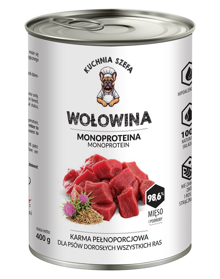 Kuchnia Szefa Rind Monoprotein ist ein Futter, das die Einfachheit natürlicher Zutaten mit einem modernen Ansatz zur Ernährung von Hunden verbindet.