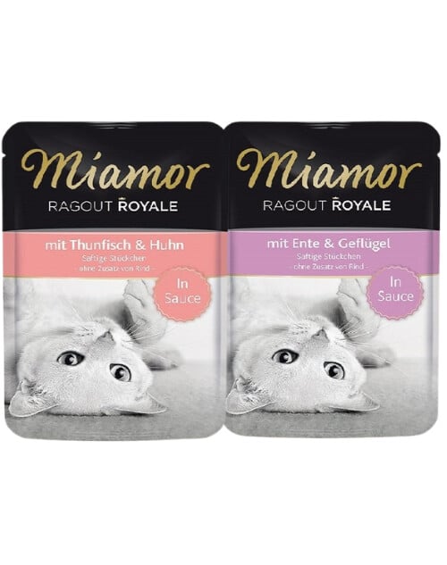 Miamor Ragout Royal ist ein exquisites Futter mit königlichem Geschmack. Der hohe Anteil an Geflügelfleisch und Fisch macht das Futter besonders schmackhaft. Geflügel oder Fisch in Kombination mit ausgewählten Zutaten ergeben eine perfekte Geschmackskomposition. Miamor Ragout Royale ist zusätzlich mit einer delikaten Sauce angereichert.