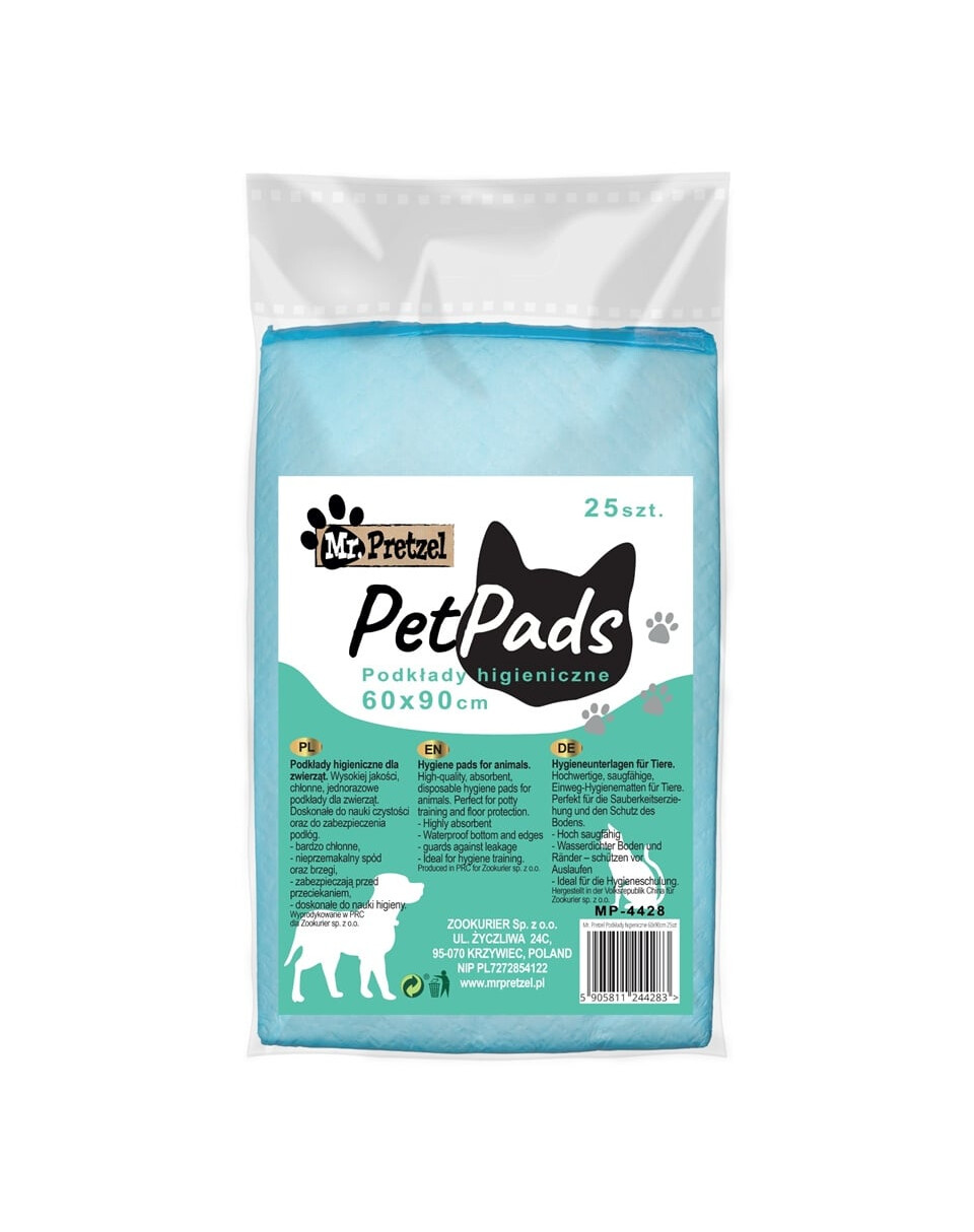 Hygienische Unterlagen von Mr. Pretzel 60×90 cm – 25 Stück sind eine Kombination aus hoher Saugfähigkeit, Langlebigkeit und Komfort. Mit ihnen wird die Sauberkeit im Haus oder auf Reisen einfach und bequem, und Ihr Hund hat immer einen hygienischen, trockenen und angenehmen Untergrund.