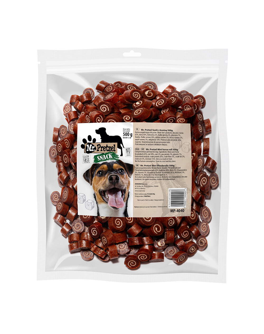 PREMIUM - Mr. Pretzel Sushi mit Pferdefleisch ist ein hochwertiger, extrem schmackhafter, fleischiger Snack für deinen vierbeinigen Freund.