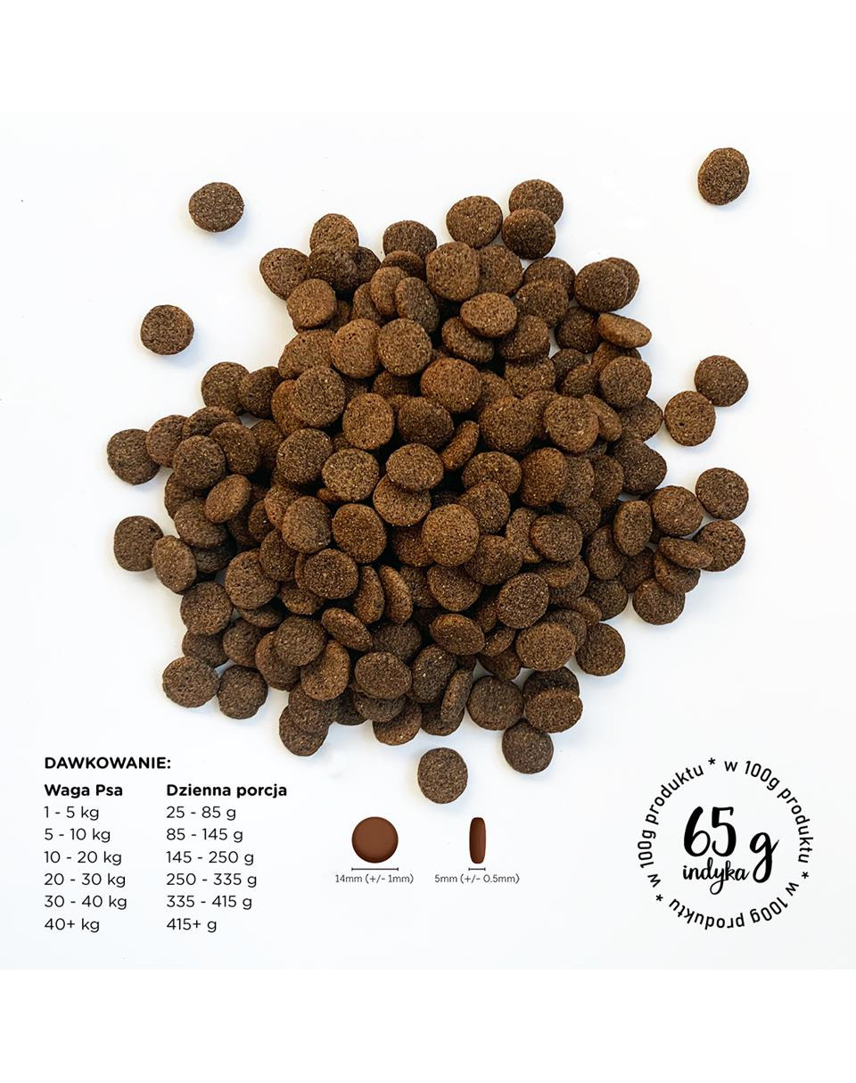 Natürliches, getreidefreies Trockenfutter mit einem sehr hohen Gehalt an frischen Rohstoffen. Sogar 65 g Truthahnfleisch in 100 g Produkt! Zubereitet aus hochwertigem frischem und saftigem Fleisch. Reich an Nährstoffen und gut verdaulichen tierischen Proteinquellen. Dieses Futter enthält nur eine Proteinquelle und reduziert dadurch das Risiko der Sensibilisierung und Nahrungsmittelintoleranz.