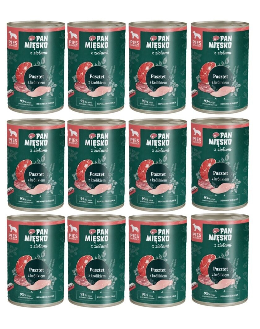 PAN MIĘSKO mit Kräutern PASTETE MIT KANINCHEN VOLLE MAHLZEIT FÜR ERWACHSENE HUNDE