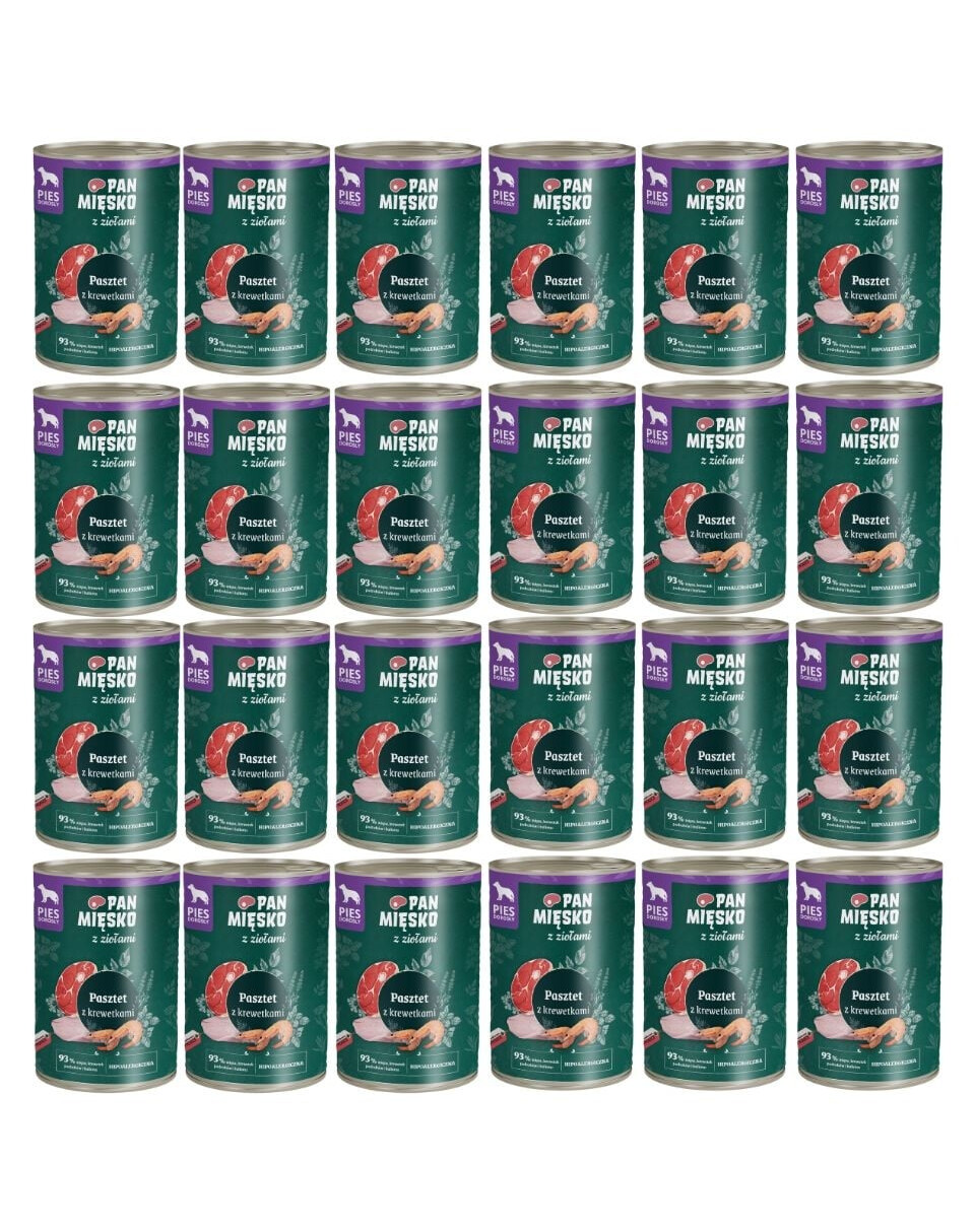PAN MIĘSKO mit Kräutern PASTETE MIT GARNELEN VOLLFUTTER NAHRUNG FÜR ERWACHSENE HUNDE