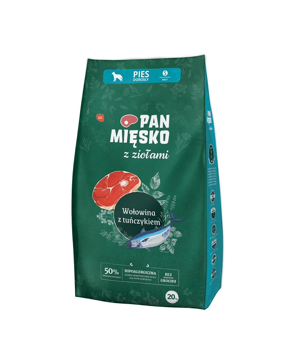 Pan Mięsko mit Kräutern ist ein Angebot für Vierbeiner und ihre Besitzer, die nach Futter suchen, das aus sorgfältig ausgewählten Zutaten zubereitet wird. Die Zugabe einer Kräutermischung schafft eine aromatische Portion Geschmack und Gesundheit für Ihren Hund.