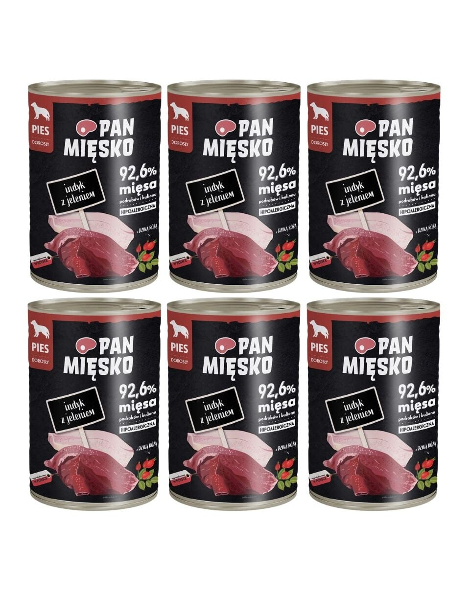 Entdecken Sie das hochfleischige Nassfutter für Hunde von Pan Mięsko. Es enthält sorgfältig ausgewähltes Fleisch, die Zugabe von saftigen, polnischen Äpfeln sowie wertvolle Zusätze wie Kräuter und Samen, die sich positiv auf die Gesundheit und das Wohlbefinden Ihres Hundes auswirken. Unsere Rezepte werden von Experten erstellt, um Ihrem vierbeinigen Begleiter das zu geben, was er braucht.