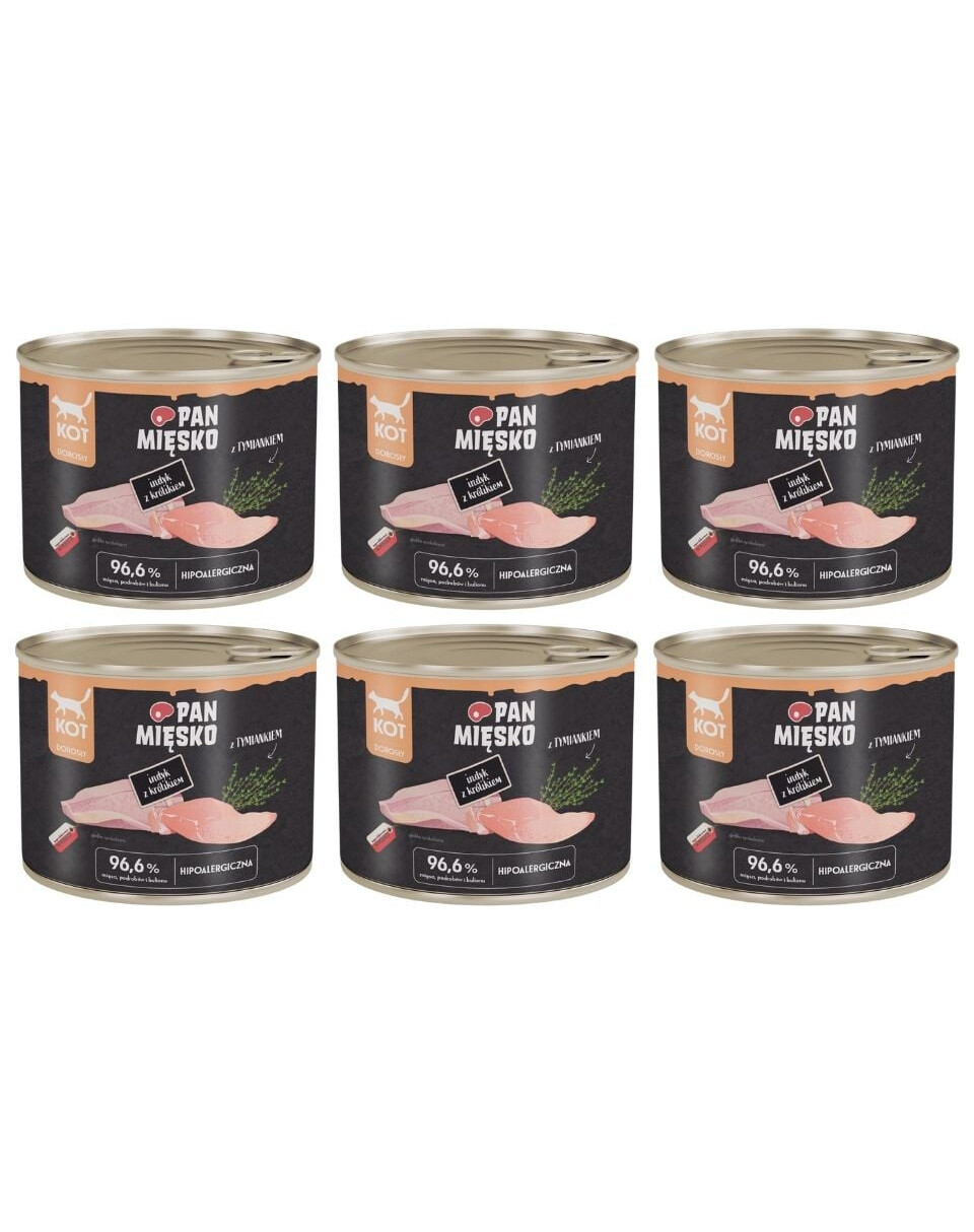 PAN MIĘSKO Nassfutter mit Pute, Kaninchen und Thymian für adulte Katzen hypoallergen 6x200 g